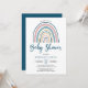Blauer Mute Tones Boho Rainbow Baby Dusche Einladung