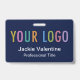 Personalisieren Sie unser berufliches PVC-Namensschild mit Ihrem Firmenlogo, Mitarbeiternamen, Jobtitel oder anderen benutzerdefinierten Texten. Erhältlich mit einem Lanyard, einer Metallklammer oder einer einziehbaren Rolle. Design in marineblau und anderen Farben mit modernem minimalistischem Design von MISOOK. Alle Farben sind anpassbar. Die Abmessungen sind 3,38 Zoll x 2,13 Zoll. Keine Mindestbestellmenge und keine Einrichtungsgebühr. Alle Bestellungen werden von Zazzle auf Zazzle-Produkten ausgeführt. MISOOK hat KEINE persönlichen Daten, Lieferdaten oder Kreditkarteninformationen, daher kontaktieren Sie Zazzle direkt für Fragen, die auch Fragen zur Anpassung Ihres Designs beinhalten.