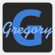 Blauer Name und Monogramm Quadratischer Aufkleber