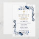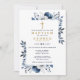 Blauer Navy Elegant Botanische Blumentaufen Einladung