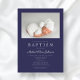 Personalisiert Navy Blue Modern Boy Foto Taufe Einladung.
