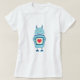 T - Shirt der kundengerechten der niedliche Roboterfrauen mit einer Cartoonillustration eines blauen unbeholfenen Cartoonroboters, der eine Platte mit einem roten Herzen hält. Dieses Roboter-Shirt ist für Mädchen passend, die Lieberoboter und Geekmädchen, auch.
