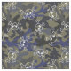 Camouflage-Gewebe in den Feldern Blau, Holzkohle und Olivengrün und ein Muster der Schädel Konturen in Weiß.