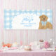 Feiern Sie das erste Lebensjahr Ihres Kleinen mit diesem bezaubernden "One Golden Year"-Geburtstagsbanner! Mit einem süßen Golden Retriever-Welpen, der eine blaue Gingham-Schleife trägt, einem weiß gerahmten Rand mit Zackenmuster und einem weichen, karierten Hintergrund in Blautönen, verleiht dieses personalisierte Banner zum ersten Geburtstag Ihrer Feier den perfekten letzten Schliff.