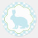 Blauer Osterhasen auf Gingham-Karo-Aufkleber Runder Aufkleber