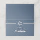 Genießen Sie den Geist der Tradition und der Familie mit dieser elegant gestalteten Platzkarte, die sich perfekt eignet, um Ihrem Pessach eine persönliche Touch hinzuzufügen. Die Karte ist mit einem tiefblauen Hintergrund geschmückt und mit einem knalligen weißen Stern von David symbolisiert sie sowohl den Glauben als auch das Erbe. Die scharfen, klaren Linien der weißen Grenze fügen eine moderne Drehung hinzu, während der zentrierte, fette Text anmutig den Namen eines geliebten Gastes ankündigt, in diesem Fall "Tante Michelle". Diese Platzkarte sorgt für ein ausgewogenes Verhältnis zwischen zeitgenössischem Design und zeitloser Symbolik, sodass sich jeder Sitzplatz am Tisch als besonders gefällig und überlegt fühlt.