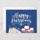 Diese Postkarte bietet ein festliches und einladendes Design, das perfekt für die Pessach-Feier geeignet ist. "Happy Pessach" ist elegant in einem spielerischen, fließenden, weißen Schriftart geschrieben, der Pop vor dem reichen marineblauen Hintergrund. Das Design besteht aus traditionellen Pessach-Elementen wie Matzah, illustriert mit feinem Detail, und einem Stern von David, die eine klare Verbindung zu den Traditionen des Urlaubs. Unter dem Gruß, eine Reihe von Weingläsern, symbolisiert den zeremoniellen Wein während der Seder konsumiert, fügt eine soziale und feierliche Touch zu den Bildern. Grünpflanzen und kleine Blüten, die sich um die Weingläser verstreut befinden, sorgen für ein Gefühl der Frühlingszeit und Erneuerung. Rot-weiße Blume verleihen dem Ganzen einen farbenfrohen Kontrast, der wunderschön mit der tiefblauen Kulisse kontrastiert und das Design mit einem Gefühl der Wärme und Freude vervollständigt, das für die Ansammlung des Urlaubs charakteristisch ist.