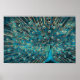 Blauer Pfau mit entfaltetem Schwanz Poster
