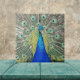 Keramik-Kachel mit dem Foto-Bild eines wunderschönen, blauen Pfauens mit farbenfroher Federabwurf. Wählen Sie Ihre Kachelgröße aus. Eine tolle Küche trivet!