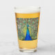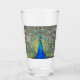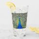 Dekoratives Trinkglas für Ihre Lieblings-Kaltgetränke, das das Foto eines wunderschönen, blauen Pfauenpfaues mit farbenfrohen Federabstürzen zeigt.