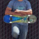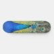 Skateboard-Design, das das Foto eines farbenfrohen, blauen Pfauenpfaues mit fantastischen Federn zeigt. Ein auffälliges Design! Wählen Sie Ihre Skateboardgröße aus. Füllen Sie Ihr Skateboard mit LKWs und Rädern aus, falls gewünscht.