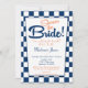 Eine niedliche Braudusche mit marineblau-weißem Retro-Dinner und einem cremefarbenen Hintergrund zum "Dusche The Bride".