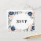 Blütenblaue, geometrische Hochzeitskarte RSVP mit eleganten Bouquets aus Navy / Dusty Blau, Weiß , Rot , Pfirsichblüte und Pfirsichgrün Eukalyptus-Blätter und elegantem Glitzer geometrischem neutralem Rahmen. Bitte kontaktieren Sie mich für Hilfe bei der Anpassung oder wenn Sie ein anderes Produkt mit diesem Design benötigen.