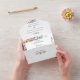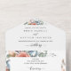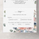 Freuen Sie sich auf diese exquisite und elegante All-in-One-Hochzeitseinladung mit perforierter UAWG-Postkarte. Delikate Einladung mit wunderschönen handbemalten Aquarellnuancen-Details mit atemberaubender Vegetation und Blume in einer Mischung aus Rosa, Pfirsich, Elfenbein, sanften Korallen, staubblauen, blauen und grünen Tönen, die alle Bereiche Ihrer Einladung umrahmen. Moderne handgeschriebene Kalligrafieelemente. Umweltfreundlich, da keine zusätzlichen Beilagen, RSVP-Karten oder sogar Umschläge nötig sind, hat diese Einladung alles! Die Möglichkeit, sowohl Hochzeitsfeier und Empfang Details hinzuzufügen, als auch UAWG postcard bereit für die Gäste zu füllen und zu schicken! Option, Einladungen mit gedrucktem (oder Handschrift später) Gastnamen auf der Rückseite zu bestellen, damit Sie eine Karte ohne Umschlag verschicken können - ODER - wenn Sie einen Umschlag bevorzugen, können Sie wählen, um jede Nachricht oder ein Angebot, die Sie gewollt haben, hinzuzufügen. Teil unserer "Blissful Floral" Hochzeitskollektion und Veranstaltungsreihe. Dieselbe Einladung mit Foto auf der Rückseite anstelle von Gästennamen oder Zitat, auch verfügbar. Ein attraktives Design für das elegante, aber dennoch praktische und Öko-freundliche Paar!