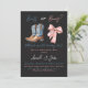 Elegant Was wird Baby Be Boots oder Bows Themed Gender Reveal Einladung mit Aquarell rosa Bogen und blauen Cowboy Stiefel. Entsprechende Produkte finden Sie in der Sammlung.