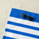 Blauer Piranha Fisch auf blau und weiß gestreift Strandtuch