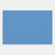 Das Papier besteht aus einem Blatt, das blau mit weißen Polka-Punkten ist, einem Blatt blau mit weißen Streifen und einem Blatt, das ganz blau ist.