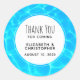 Wir bedanken uns bei den Aufklebern mit einem Foto von klarem, blauem Wasser des Beckens, mit schimmernden Reflexionen. Ein weißer Kreis, oben mit dem Text, der sich darin befindet.