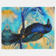 Grosser, schwarzer Raven auf abstraktem, wirbelblau-goldfarbenem Hintergrund AI Art Created by minx267