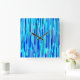 Blauer Regenfall Abstrakt Quadratische Wanduhr