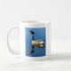 Blauer Reiher auf Enten-Lockvogel durch Tasse
