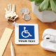 Blauer Rollstuhlbehinderungssymbol benutzerdefinierter Schlüsselanhänger. Erstellen Sie Ihre eigene personalisierte Schlüsselkette. Mit Behinderung Logo. Fügen Sie Ihren eigenen Text hinzu. Blaues Quadrat mit weißer Handicap-Grafik. Beidseitiger Druck.
