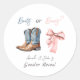 Elegant Was wird Baby Be Boots oder Bows Themed Gender Reveal Classic Round Aufkleber mit Aquarellfarbe rosa Bogen und blauen Cowboy Stiefel. Entsprechende Produkte finden Sie in der Sammlung.