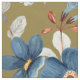 Blau und Rost/Orangen Blume auf den olivgrünen botanischen Herbst/Herbst Stoff.