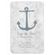 Der rustikale Anker Save the Date Flexi Magnet mit einem blauen Anker auf einem hellgrauen Marmorhintergrund und eignet sich ideal für eine Hochzeit mit Wassersport. Diese klassische und einfache speichern Sie den Datums-Magnet ist einfach, um Ihre Hochzeit Details. Klicken Sie auf Anpassen, um weitere Personalisierungsoptionen zu erhalten.