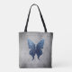 Trage alle deine Sachen, wenn du unterwegs bist, mit einer SchmetterlingsschmetterlingsTasche. Das Design der Tasche zeichnet sich durch einen lebhaften Schmetterling aus, der mit einem Vintagen, grauen Damast-Muster kontrastiert. Auch zusätzliche Geschenkartikel sind in diesem Design erhältlich.