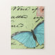 Blauer Schmetterling auf Aquamariner Postkarte Puzzle