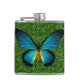 Blauer Schmetterling auf der Flasche mit grünem Gl Flachmann