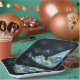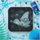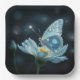 Blauer Schmetterling auf einer Mondblume Pappteller