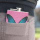 Blauer Schmetterling auf rosa Glitzer Flasche Flachmann