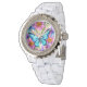 Blauer Schmetterling in einem Feld von Blume Armbanduhr