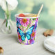 Blauer Schmetterling in einem Feld von Blume Pappbecher