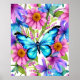 Blauer Schmetterling in einem Feld von Blume Poster