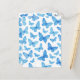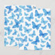 Blaues Schmetterlingsmotiv mit luftigen, verstreuten Flügeln im dunklen Hintergrund; lebendiges, naturinspiriertes Muster, ideal für den Frühling