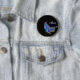 Ein herrlicher blauer Schmetterling auf einem schwarzen Hintergrund. Knopf kann mit Text Ihrer Wahl besonders angefertigt werden. Dieses ist wearable Kunst von einem farbigen Bleistift, der durch Ankündigung zeichnet.