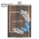 Genießen Sie Ihre Lieblings-alkoholische Getränke jederzeit mit einem rustikalen Blue Butterfly Vinyl Wrapped Flask. Das Flasendesign besticht durch einen lebendigen Schmetterling, der auf zartem Blattwerk ruht und einen Platz bietet, um seinen Namen vor einem rustikalen Holzhintergrund zu verleihen. Auch zusätzliche Geschenkartikel sind in diesem Design erhältlich.