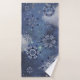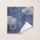Schneeflocken von blau und weiß auf weißen Wolken unter einem Sternenhimmel.