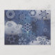 Schneeflocken von blau und weiß auf weißen Wolken unter einem Sternenhimmel.