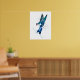 traditionelle Aquarellbilder mit einem surreal blauen Schwalben, der als dekorativer Plakatdruck herumfliegt.