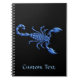 Blaue Skorpion zeichnend mit 3D-Schattierung. Benutzerdefinierte Hintergrundfarbe. Eigener Text.