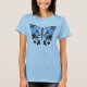 Zwei Schädel bilden die Flügel dieses blauen Schmetterlings mit Blume Akzenten. Das ist ein einzigartiges Schädeldesign, das gut aussieht auf Damenbekleidung und Kinderbekleidung.