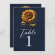 Blauer Sonnenblumen Hochzeit Tischnummer