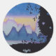 Blauer Sonnenuntergang abstrakte Landschaftsmalere Runder Aufkleber