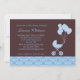 Sehr elegante dennoch moderne Babypartyeinladung für Mama-zusein, das einen Jungen erwartet. Kennzeichnet einen Spaziergänger mit Ballonen weich im Blau auf einem braunen Hintergrund. Dieser Entwurf ist auch im Rosa und im Gelb verfügbar.
