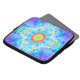 Ein blaues, gelbes und orange Hippieart-Mandala-Kaleidoskopmuster mit Sternen.