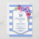 Blauer Streifen Blumen 18. Geburtstagsfeier Einladung.